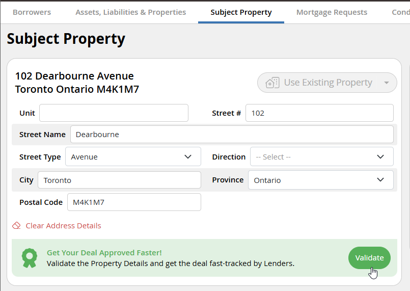 1. To add your address, navigate the Subject Property Section of your deal, and start typing to populate.